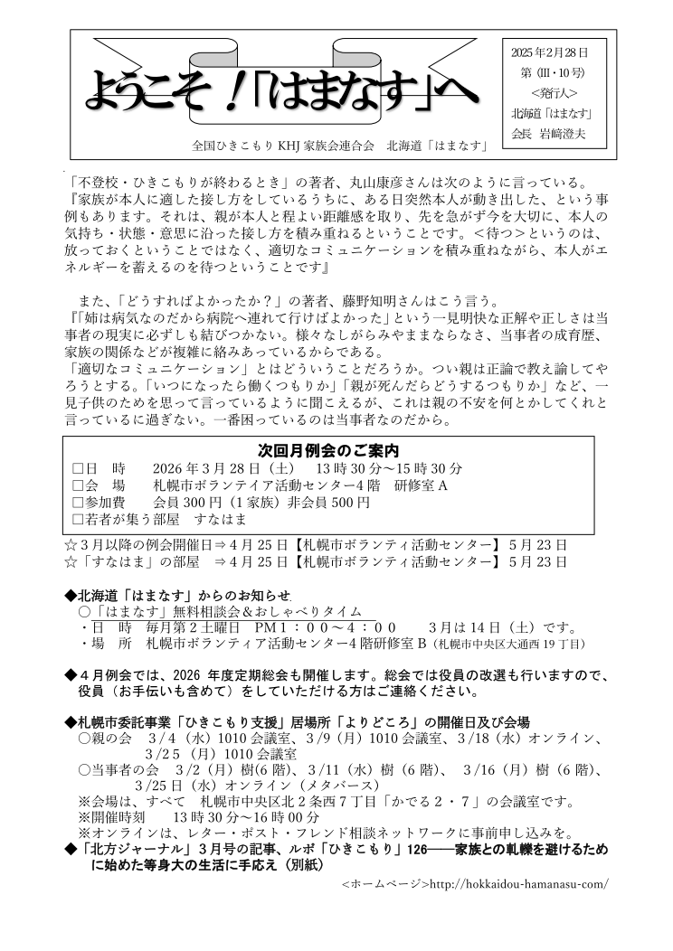 「はまなす」3月月例会のご案内